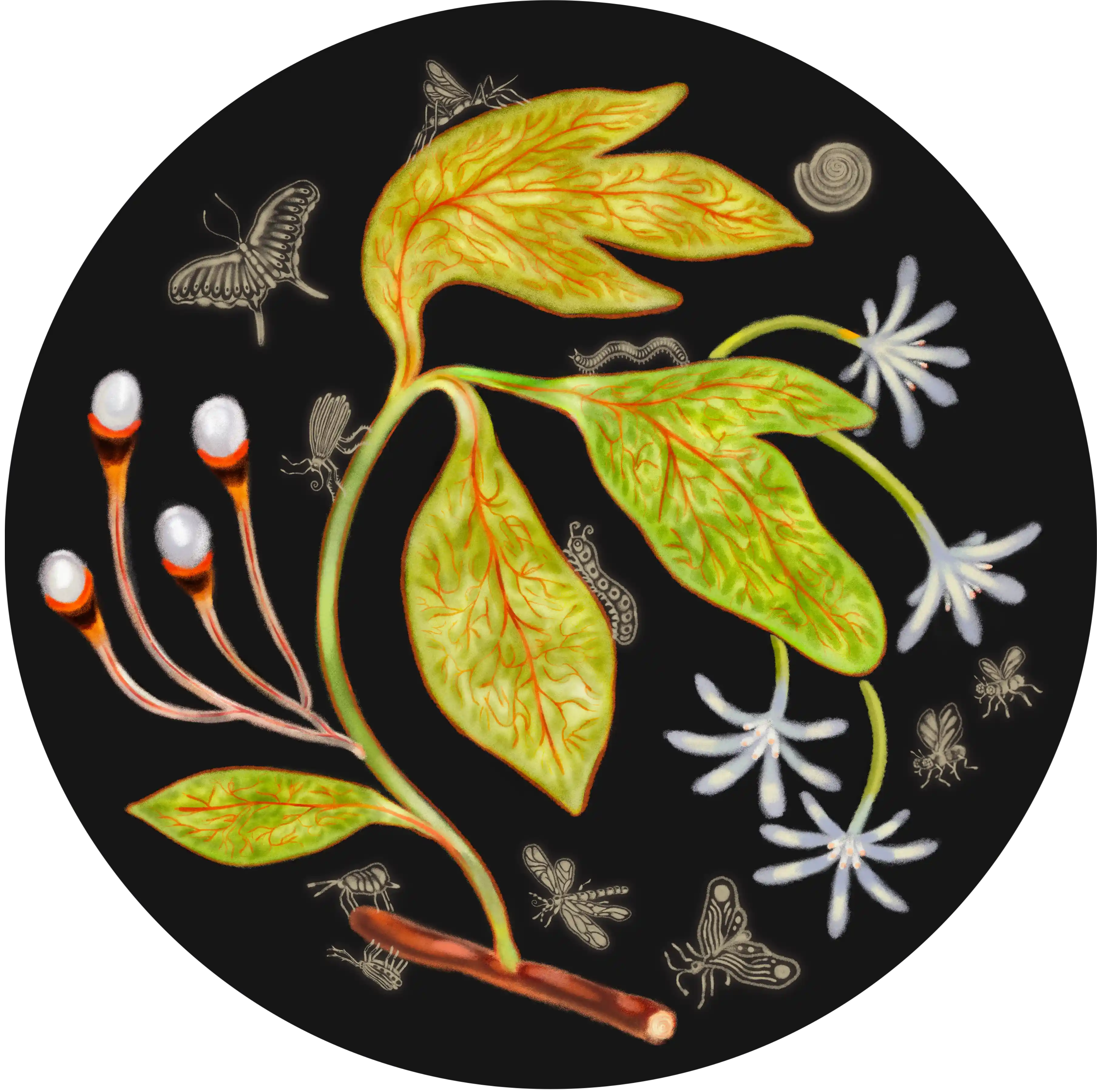 What makes Sassafras both interesting and unusual is its general unknowability alongside its massive influence. Its iterations include key roles in various foods, medicines, magic cures, poison, and illegality (for the sale of its roots). This offers a character that encompasses the many aspects of movement, and what it means to exist through space and time as a constantly changing thing — that is, where your meaning becomes contingent upon your context. This is true for many things of course, but the Sassafras really embodies this state of ambiguity, and is therefore resonant in histories of social politics and migration.